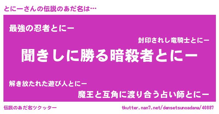| ヘコむあだ名 | 『とにー(笑)』『酢こんぶ』『とにを』 |