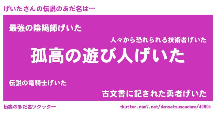 | ヒーロー風カッコイイあだ名 | 『仮面ゲイダー』『天弓騎士ゲイ』 |
