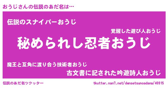 | ヒーロー風カッコイイあだ名 | 『超時空戦士オウジ』『スーパーオウジ』 |