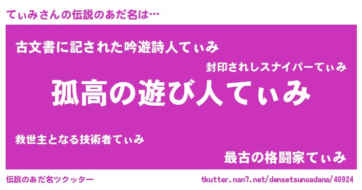 | 意味不明あだ名 | 『とにかく怪しいてぃみ』『自称てぃみ』 |