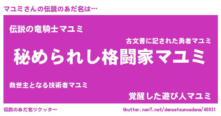 | ヒーロー風カッコイイあだ名 | 『ウルトラ戦士マユミ』『スーパーマユミ』 |
