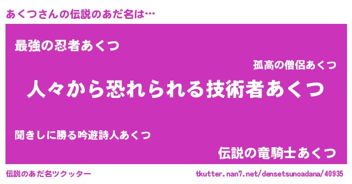 | 意味不明あだ名 | 『眠気覚ましガムあくつ味』『自称あくつ』 |