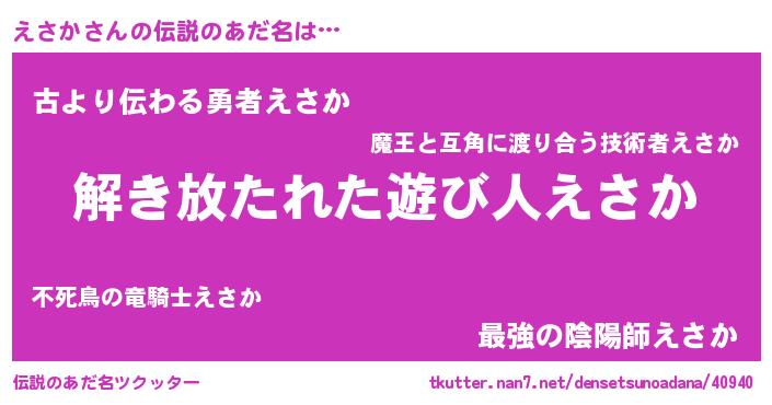 | 意味不明あだ名 | 『とにかく怪しいえさか』『自称えさか』 |