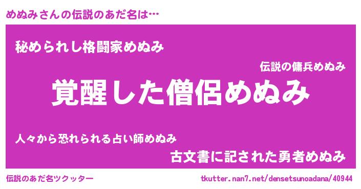 | ポケモン風あだ名 | 『ヒメヌミ』『メヌキング』 |