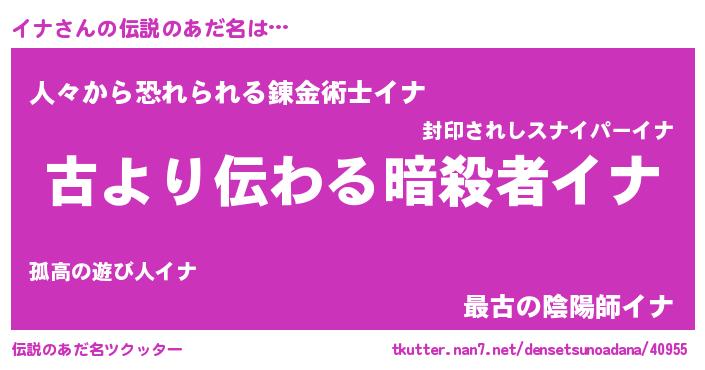 | 男性向けラノベタイトル風あだ名 | 『イナという概念が存在しない退屈な世界 』 |