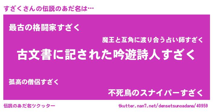 | 意味不明あだ名 | 『永久保存すざく』『自称すざく』 |