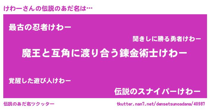 | ヒーロー風カッコイイあだ名 | 『友情の使者けわー』『最強戦士ケワー』 |