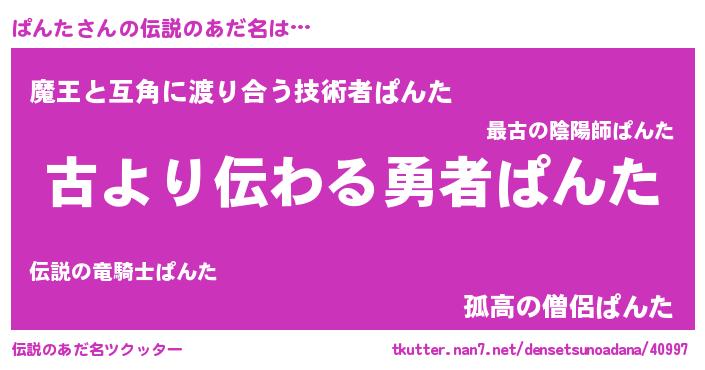 | ヒーロー風カッコイイあだ名 | 『ネオパンタ』『愛の使者ぱんた』 |