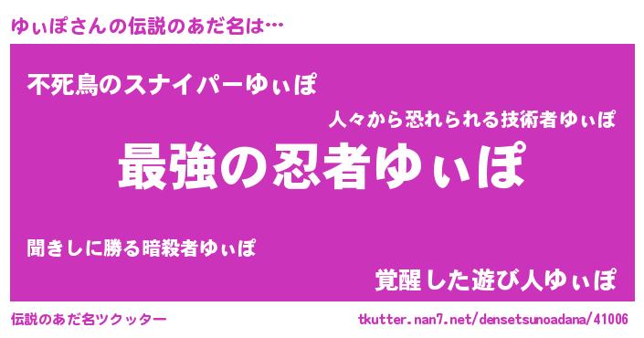 | ヒーロー風カッコイイあだ名 | 『ウルトラゆぃぽマン』『スーパーユィポ』 |