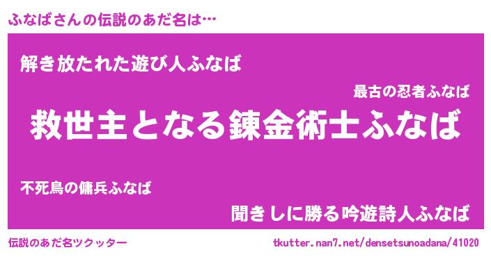 | ヒーロー風カッコイイあだ名 | 『慈愛の使者ふなば』『魔戒騎士フナ』 |