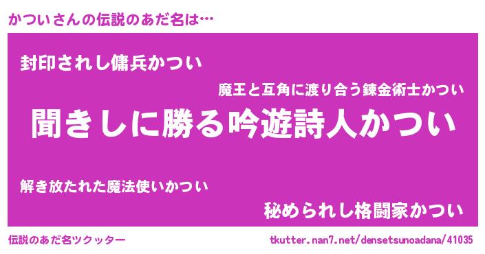 | ヒーロー風カッコイイあだ名 | 『ネオカツイ』『仮面カツダー』 |
