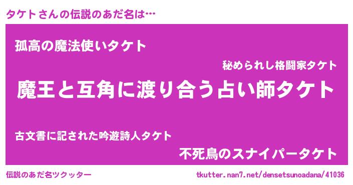 | 女子向けラノベタイトル風あだ名 | 『タケト恋絵巻』『タケトは平凡を望む』 |
