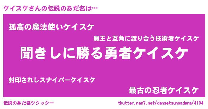 | ヒーロー風カッコイイあだ名 | 『ネオケイスケ』『暗黒騎士ケイ』 |