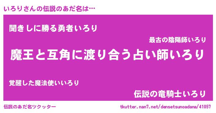 | ヒーロー風カッコイイあだ名 | 『仮面イロダー』『ウルトラ戦士イロリ』 |