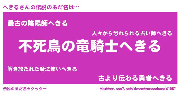 | 欧米人風あだ名 | 『へきる・ステッグマイヤー』 |