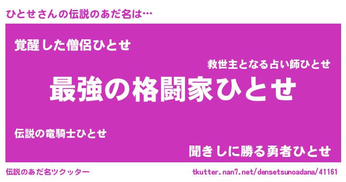 | ファンタジー風あだ名 | 『エターナルヒトセー』『ゼヒトトゥ』 |