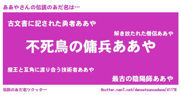 | ヒーロー風カッコイイあだ名 | 『スーパーアアヤ』『ネオアアヤ』 |