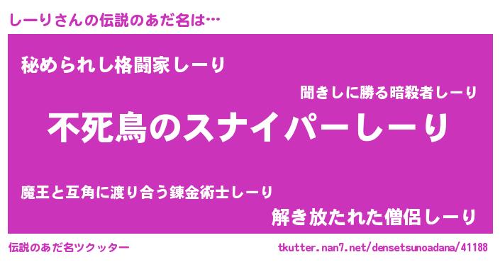 | 意味不明あだ名 | 『住所不定無職しーり(77歳)』『自称しーり』 |