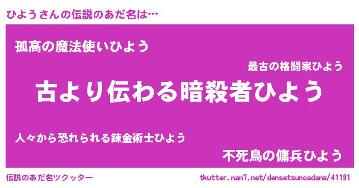 | 意味不明あだ名 | 『永久保存ひよう』『つくし科ひよう属』 |