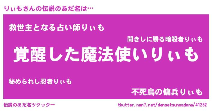 | 意味不明あだ名 | 『とにかく怪しいりぃも』『自称りぃも』 |