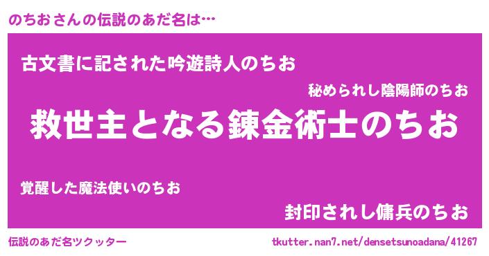 | ヒーロー風カッコイイあだ名 | 『慈愛の使者のちお』『ネオノチオ』 |