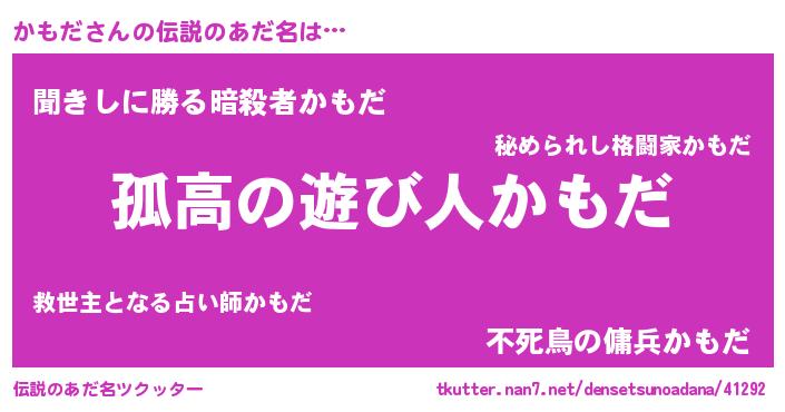 | ヒーロー風カッコイイあだ名 | 『仮面カモダー』『暗黒騎士カモ』 |