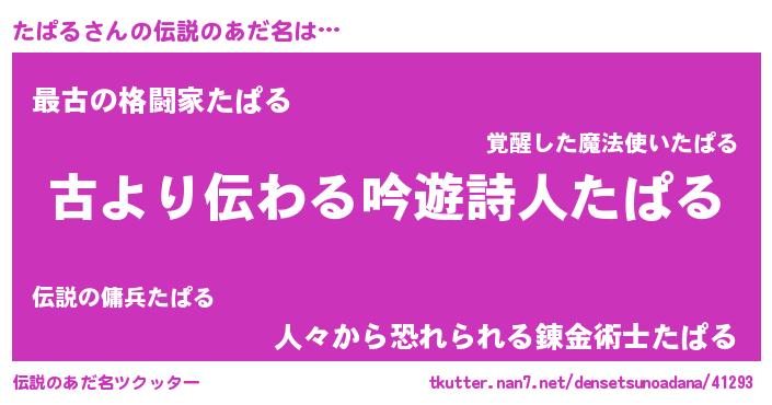 | ヒーロー風カッコイイあだ名 | 『ネオタパル』『ウルトラたぱるマン』 |