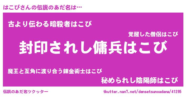 | 意味不明あだ名 | 『住所不定無職はこび(41歳)』『自称はこび』 |