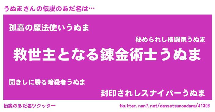 | ヒーロー風カッコイイあだ名 | 『最強戦士ウヌマ』『友情の使者うぬま』 |