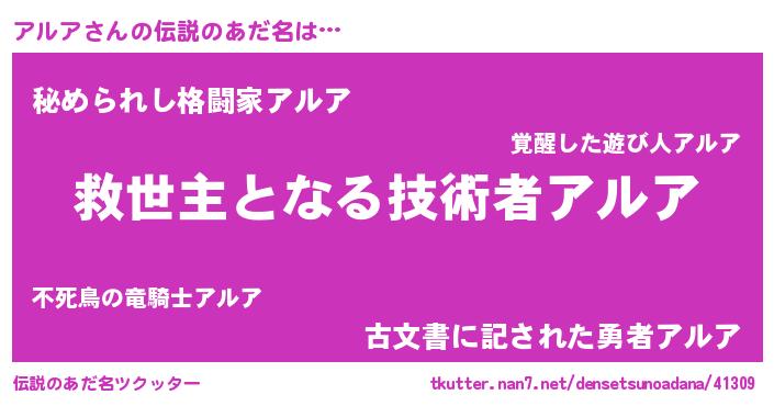 | 男性向けラノベタイトル風あだ名 | 『ノーゲーム・ノーアルア』 |