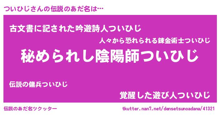 | ポケモン風あだ名 | 『ツイゴンZ』『ツイキング』 |