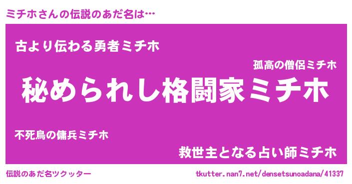 | ヒーロー風カッコイイあだ名 | 『ウルトラミチホマン』『仮面ミチダー』 |