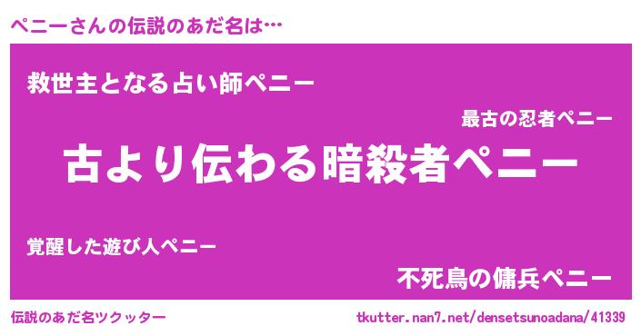 | 男性向けラノベタイトル風あだ名 | 『転生したらペニーだった件』 |