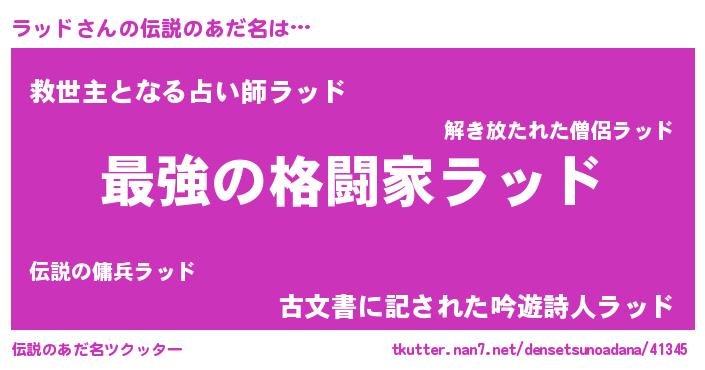 | ヒーロー風カッコイイあだ名 | 『ウルトララッドマン』『ネオラッド』 |
