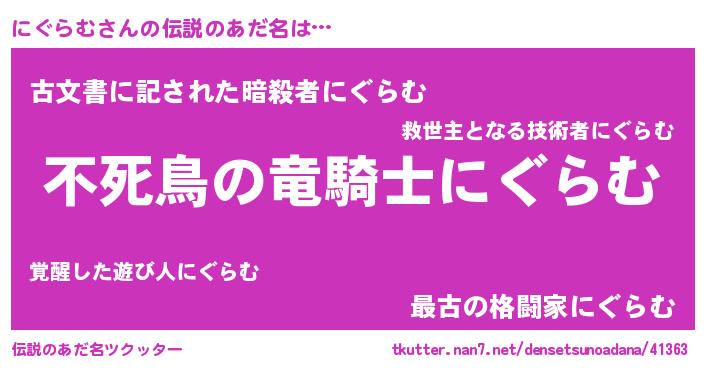 | 意味不明あだ名 | 『自称にぐらむ』『ペロリンにぐらむ』 |