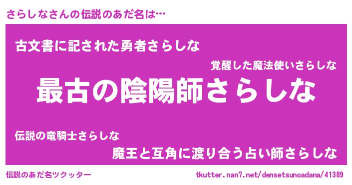 | ヒーロー風カッコイイあだ名 | 『ウルトラさらしなマン』『ネオサラシナ』 |