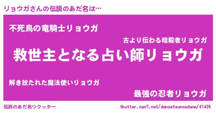| ヒーロー風カッコイイあだ名 | 『慈愛の使者リョウガ』『仮面リョダー』 |