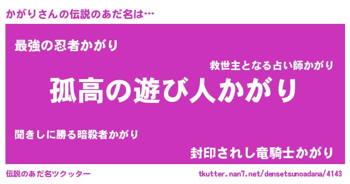 | ヒーロー風カッコイイあだ名 | 『暗黒騎士カガ』『ウルトラかがりマン』 |
