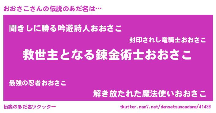 | 男性向けラノベタイトル風あだ名 | 『ノーゲーム・ノーオオサコ』 |