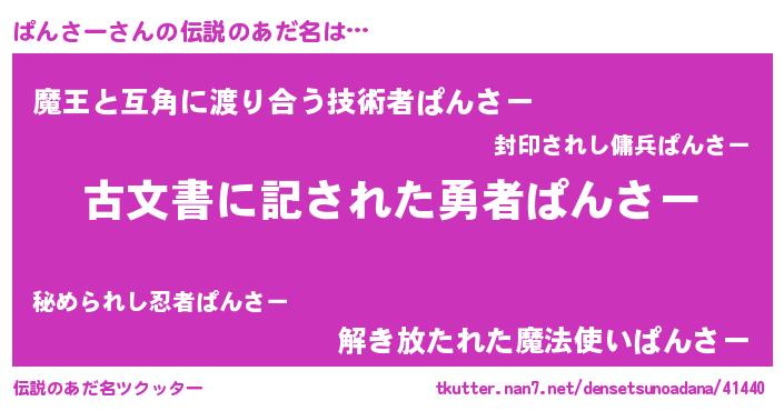 | ヘコむあだ名 | 『ぱんさー(震え声)』『ぱんを』 |