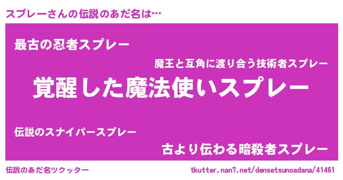 | ヒーロー風カッコイイあだ名 | 『炎刃騎士スプ』『ウルトラスプレーマン』 |