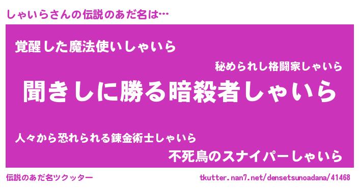 | ヘコむあだ名 | 『しゃいら(笑)』『しゃお』 |