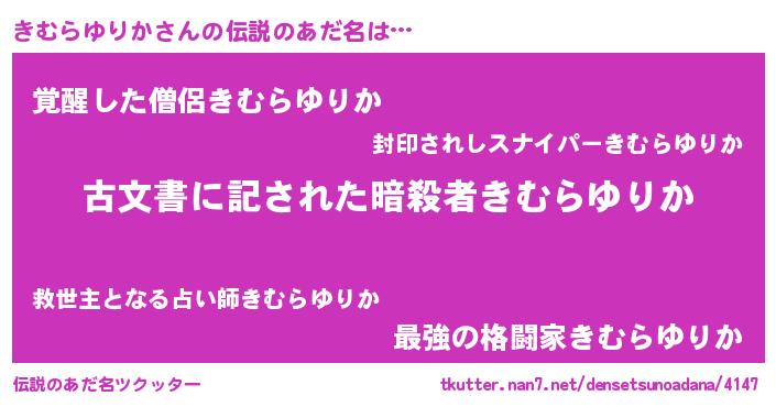 | ヘコむあだ名 | 『きむらゆりか(爆)』『きむ太郎』 |