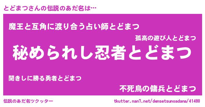 | ヒーロー風カッコイイあだ名 | 『ウルトラとどまつマン』『仮面トドダー』 |