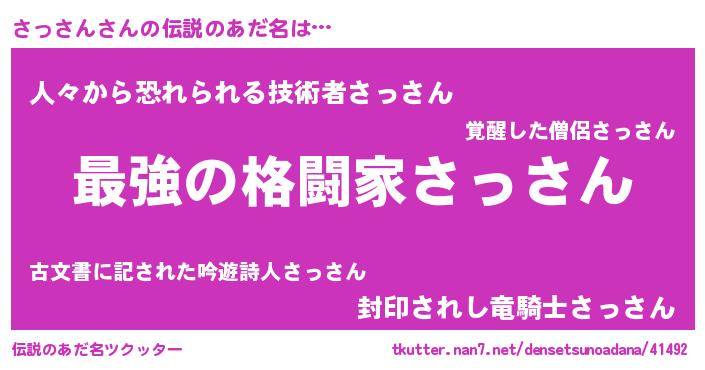 | ヒーロー風カッコイイあだ名 | 『ウルトラさっさんマン』『仮面サッダー』 |