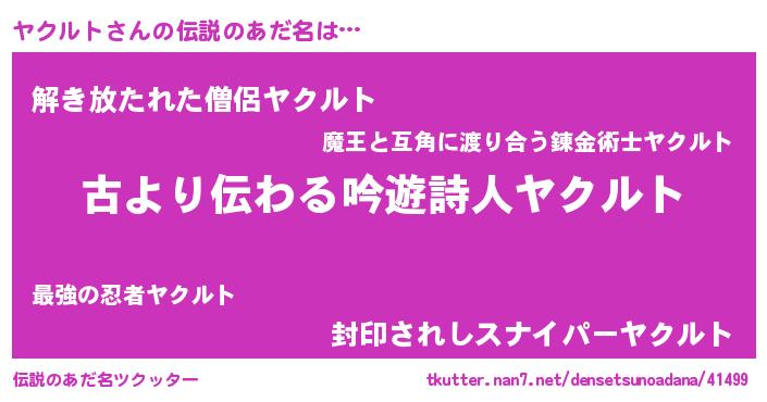 | 意味不明あだ名 | 『住所不定無職ヤクルト(9歳)』 |