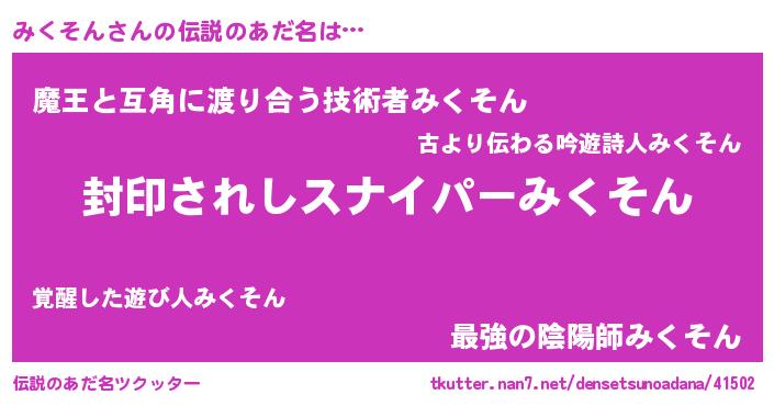 | 胡散臭い通販商品みたいなあだ名 | 『あなたにだけ特別に提供する世界で10本だけ現存している希少なブランデー…その名も「みくそん」』 |