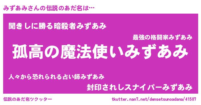 | ヒーロー風カッコイイあだ名 | 『暗黒騎士ミズ』『ネオミズアミ』 |