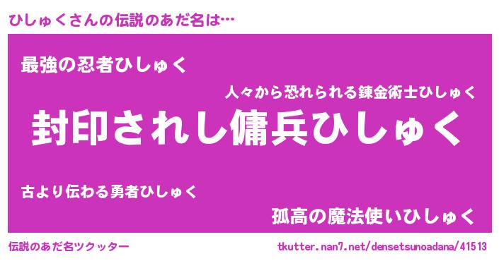 | ヒーロー風カッコイイあだ名 | 『スーパーヒシュク』『究極戦士ヒシュク』 |