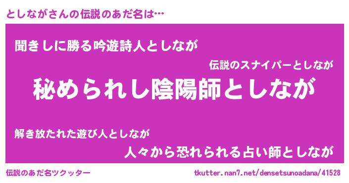 | 欧米人風あだ名 | 『としながクリステル』 |